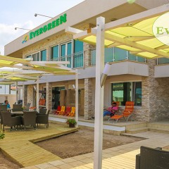 Curtea Vilei Evergreen 2 Mai, amplasata in fata vilei, este suficient de generoasa pentru a fi folosita ca loc de relaxare sau servit masa si loc de joaca pentru cei mici. Din curte se iese direct pe plaja.