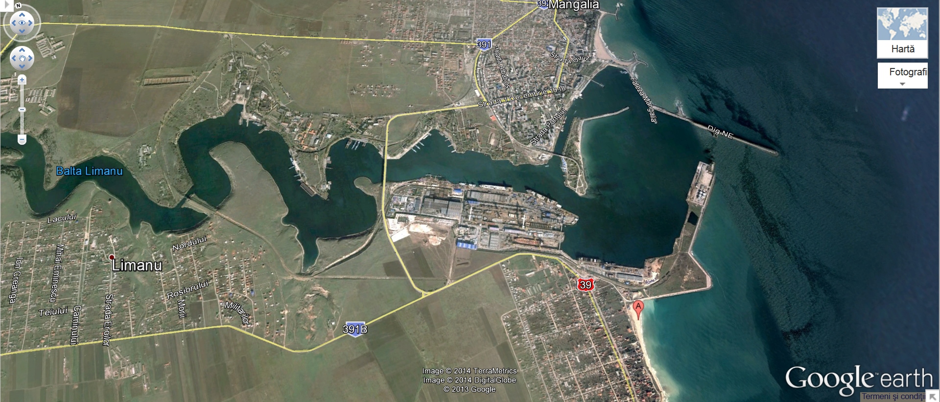 Vedere din satelit a Lacului Limanu si Portului Mangalia